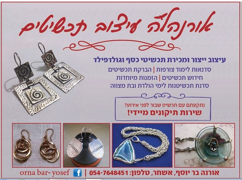 שמי אורנה בר-יוסף ואני צורפת תכשיטי כסף ואבני חן כבר משנת 1993, במשך 14 שנים ייצרתי תכשיטים עבור החברות המובילות בשוק וב 2010 הקמתי את הסטודיו-גלריה שלי "התכשיטים של אורנלה".